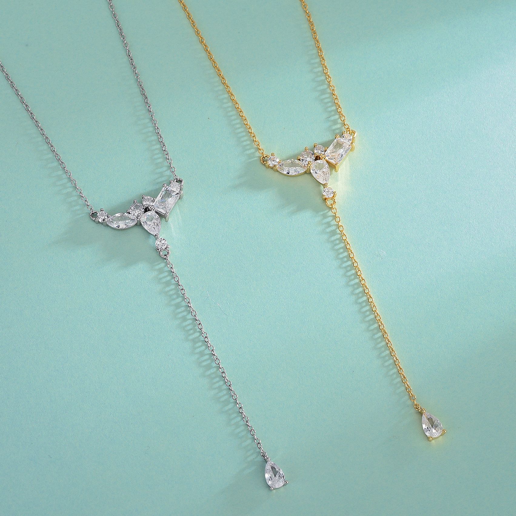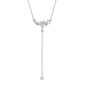 925 Sterling Silver Geometric Pink Zirconium Pendant Necklace