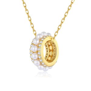 925 Sterling Silver Gold-plated Circle Pearl Necklace