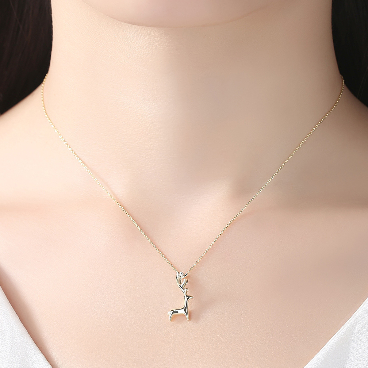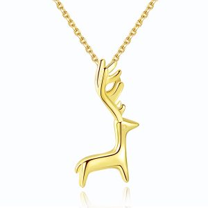 925 Sterling Silver Gold Plated Little Elk Pendant Necklace
