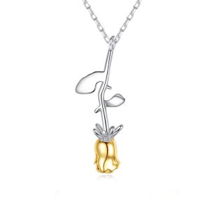 925 Sterling Silver Gold Rose Flower Pendant Necklace