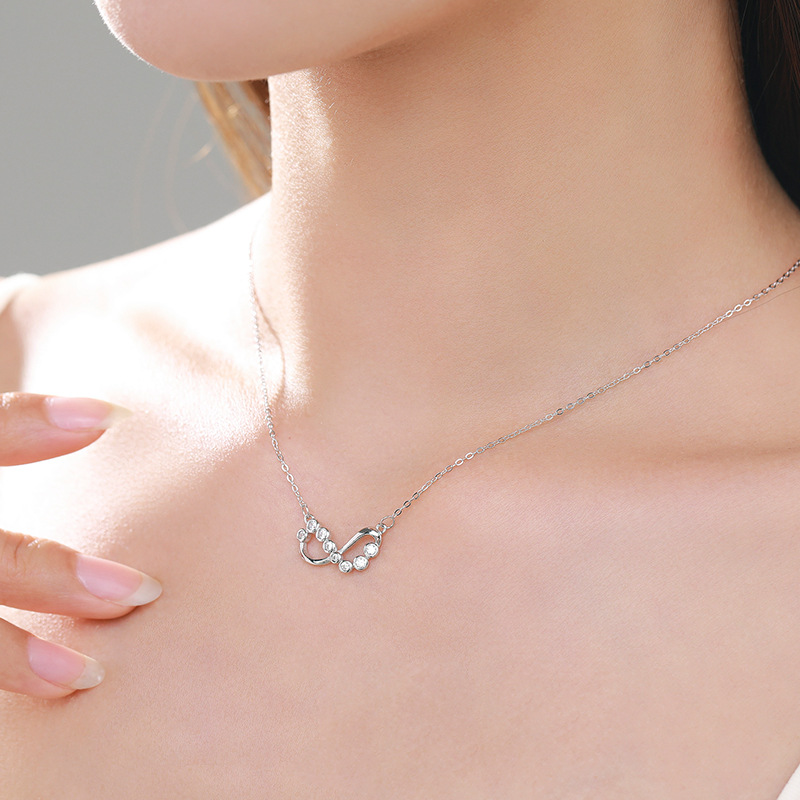 925 Sterling Silver Infinity Tassels Heart Pendant Necklace