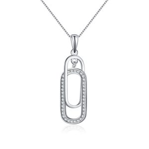 925 Sterling Silver Paper Clip Double Ring Necklace