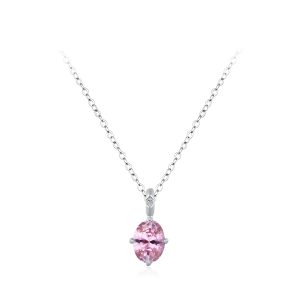 925 Sterling Silver Pink Round Zircon Pendant Necklace