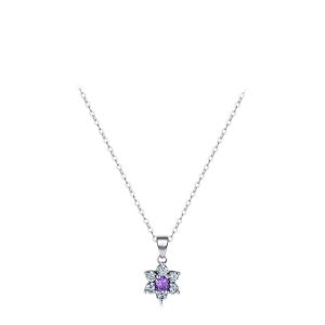 925 Sterling Silver Purple Zirconia Flower Necklace