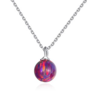 925 Sterling Silver Small Round Ball Opal Pendant Necklace
