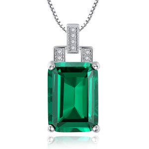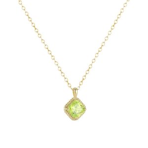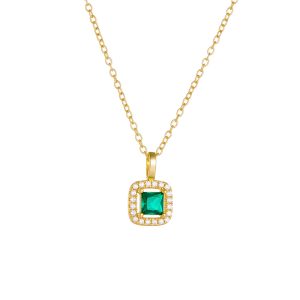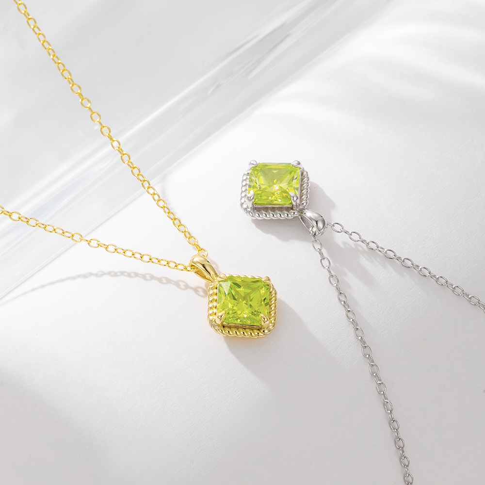 925 Sterling Silver square Green Zirconia Pendant Necklace