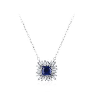 925 Sterling Silver Square Emerald Cut Pendant Necklace