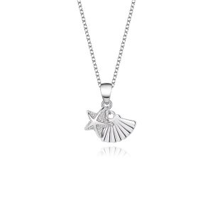 925 Sterling Silver Starfish Shell Pendant Necklace