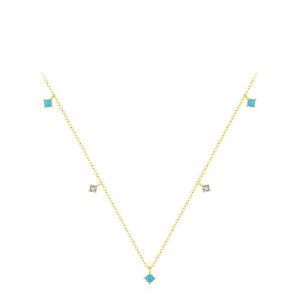 F925 Sterling Silver Small Round Turquoise Pendant Necklace