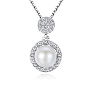 925 Sterling Silver Zirconia Big Freshwater Pearl Pendant Necklace