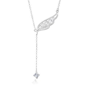 S925 sterling silver Austrian Crystal Angel Wings necklace