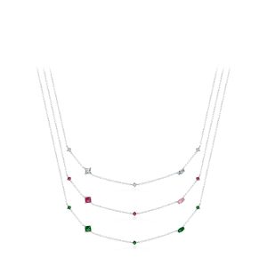 S925 Sterling Silver Colorful Geometric CZ Pendant Necklace