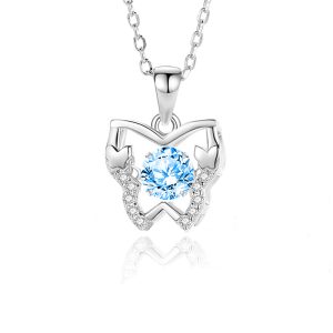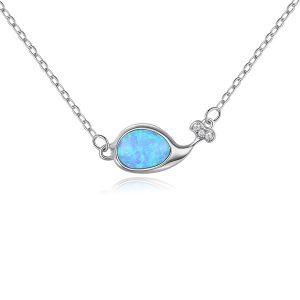S925 Sterling Silver Blue Opal Little Whale Pendant Necklace