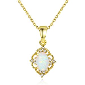 S925 Sterling Silver Blue White Oval Flower Shaped Opal Necklace