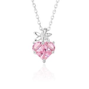 S925 sterling silver Charm heart-shaped pink zirconia necklace