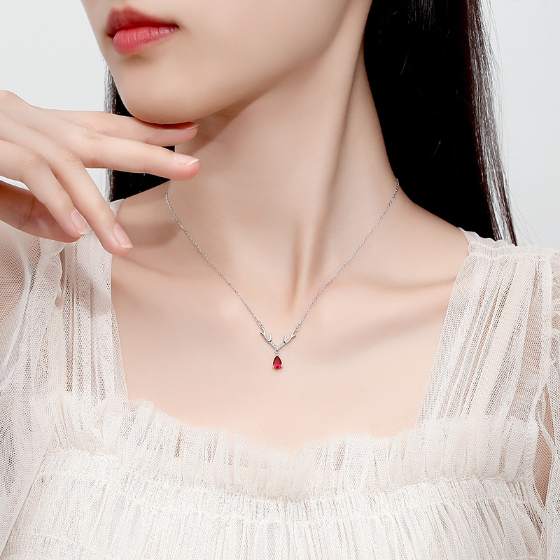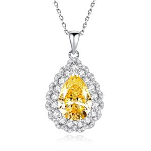 925 Sterling Silver Emerald Cut Waterdrop-Shaped Pendant Necklace