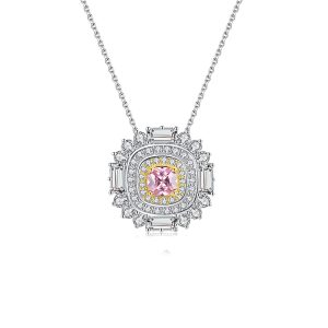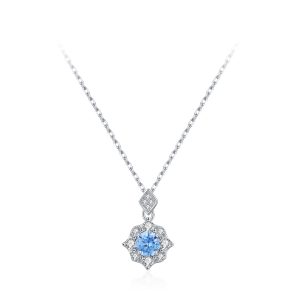 925 Sterling Silver Flower Pendant Sea Blue Zircon Necklace