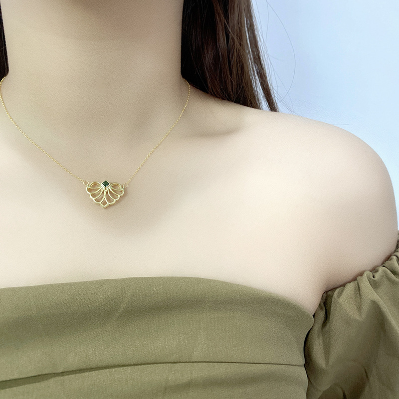 High Quality Fashion Jewelry Lotus Heart Shaped Clavicle Chain 925 Sterling Silver Emerald Hollow Love Pendant Necklace