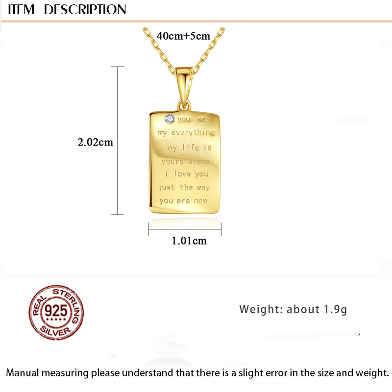 925 Sterling Silver Jewelry Square Pendant Letter Necklace