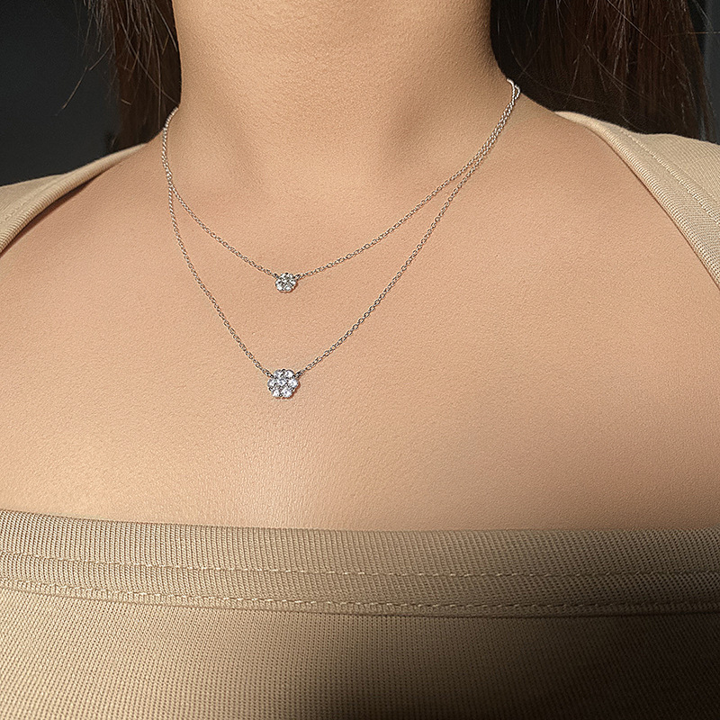 Double Layer Stackable Necklace 925 Sterling Silver Long Plum Blossom Flower Pendant Sweater Clavicle Chain
