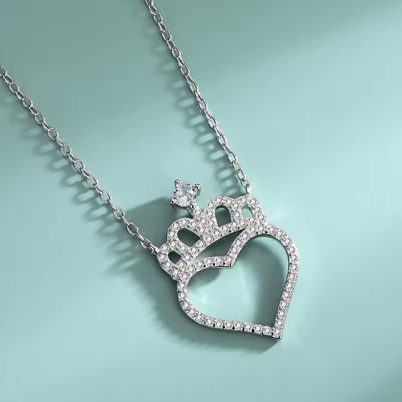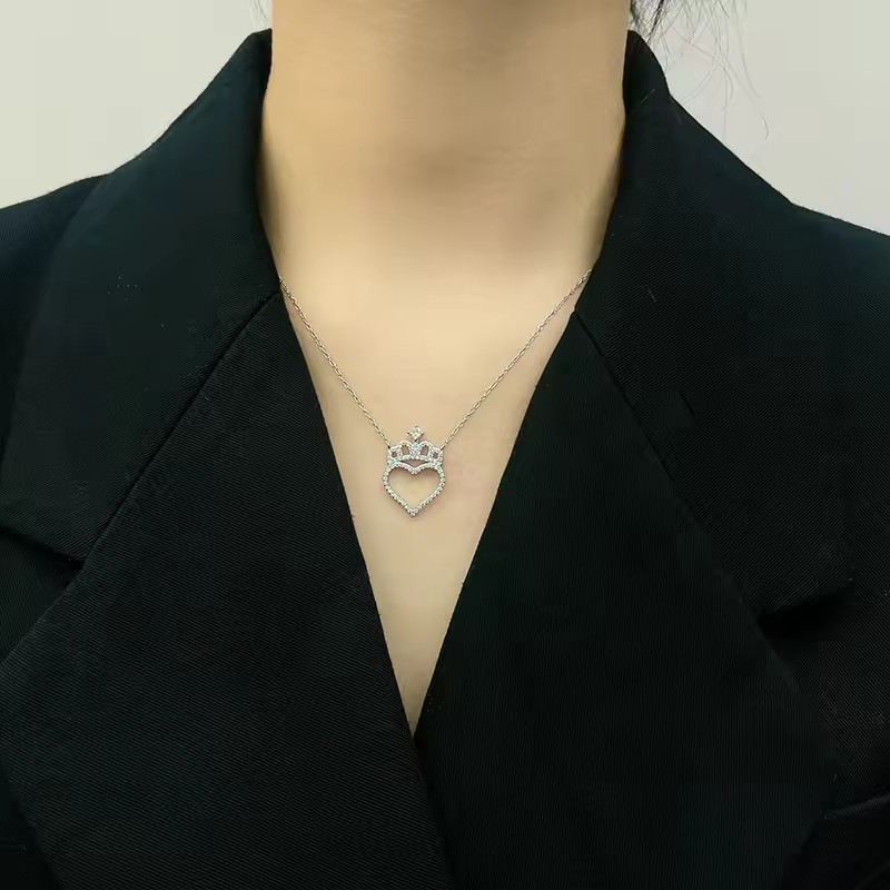 Fashionable Elegant Women’S Fine Jewelry 925 Sterling Silver Love Heart Princess Crown Pendant Necklace