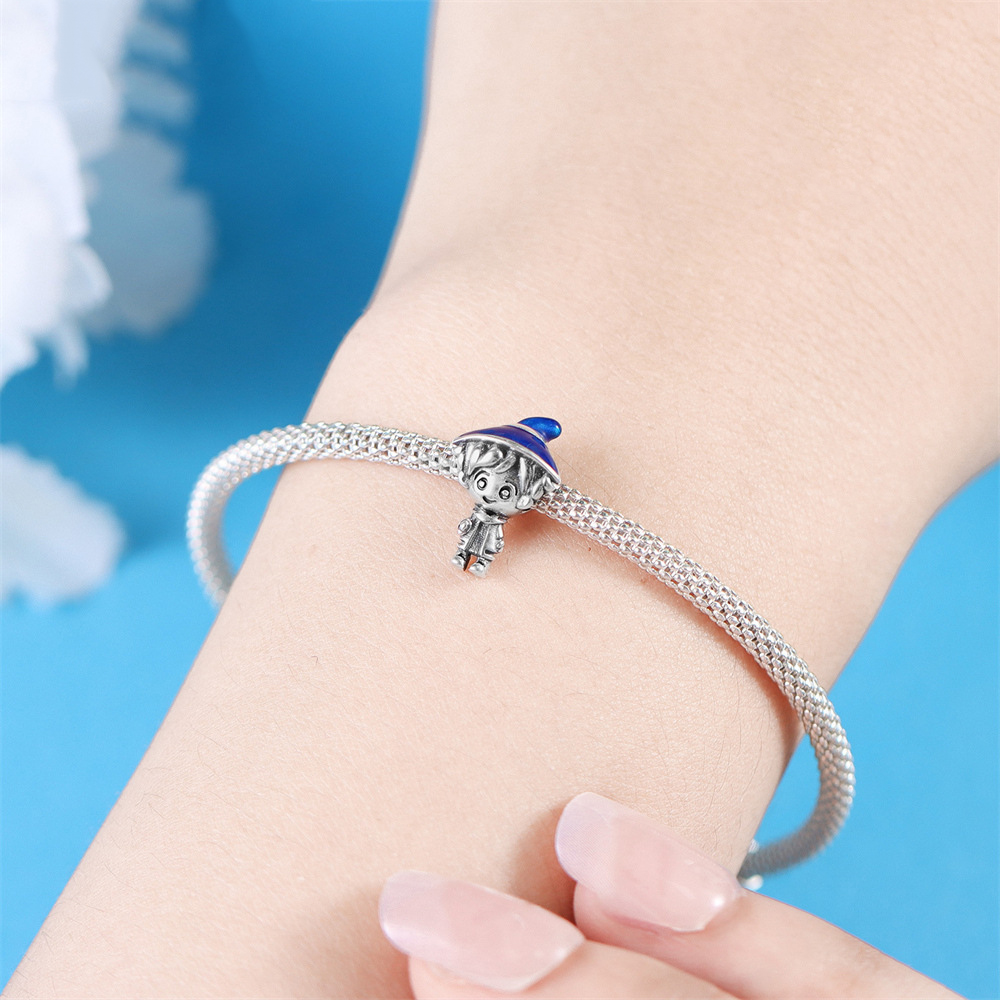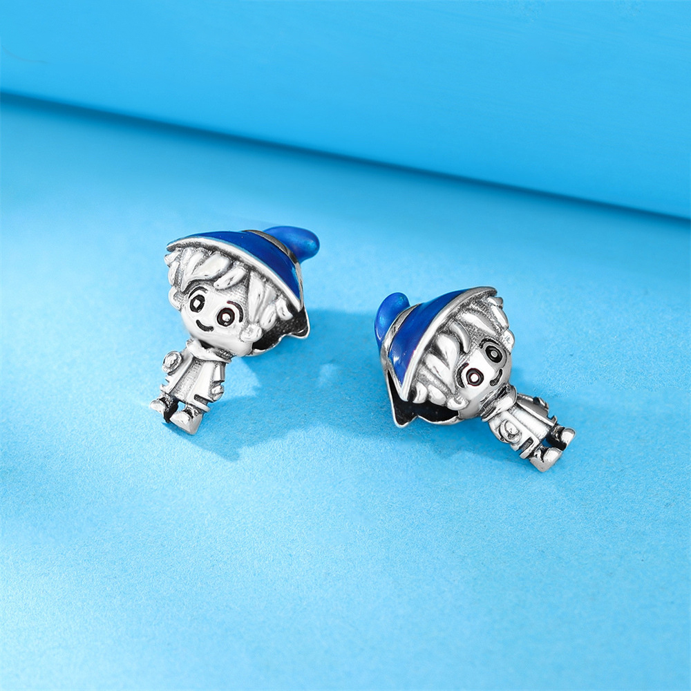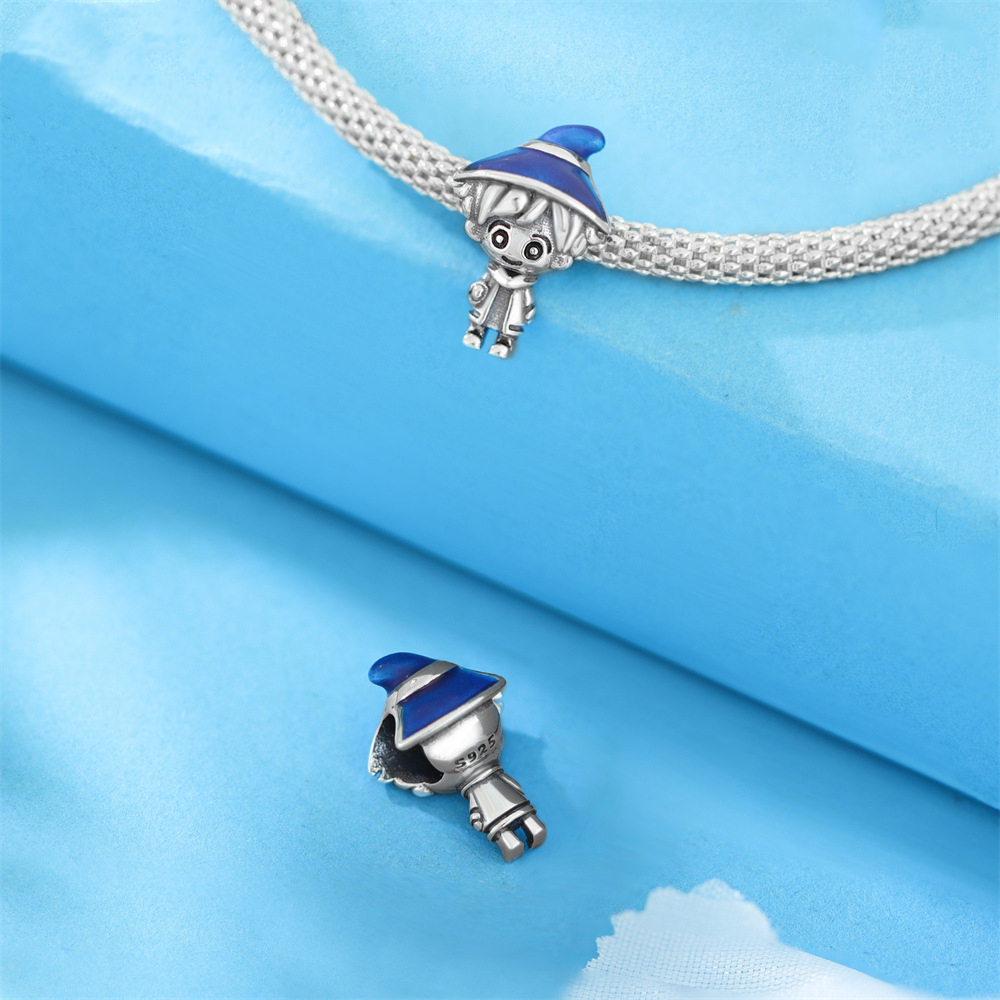 Halloween Magic Boy Charm 925 Sterling Silver Blue Enamel Magic Hat Wizard Beads DIY Bracelet Necklace Jewelry Accessories