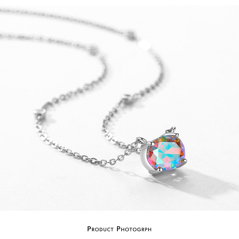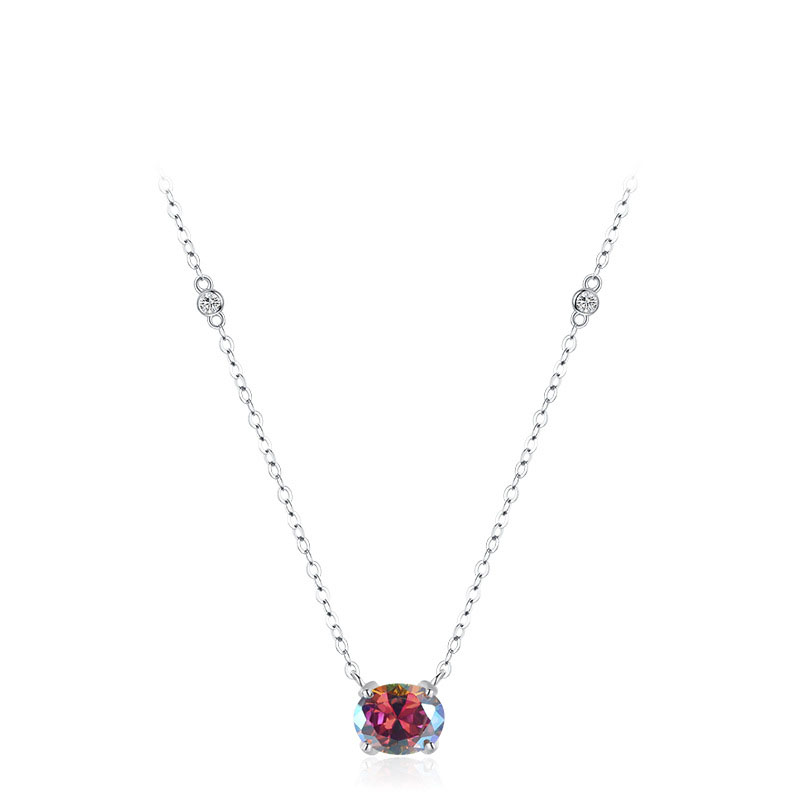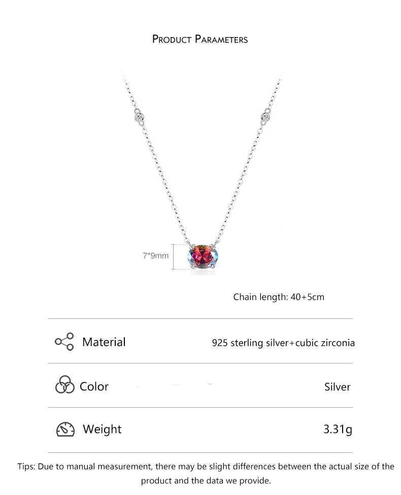 Wholesale Colorful 5a Zircon Cz Necklace 925 Sterling Silver Oval Zirconia Clavicle Chain for Jewelry Gifts
