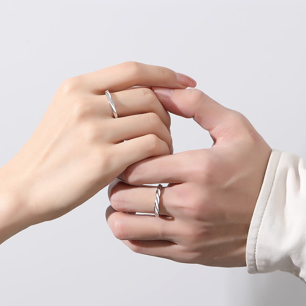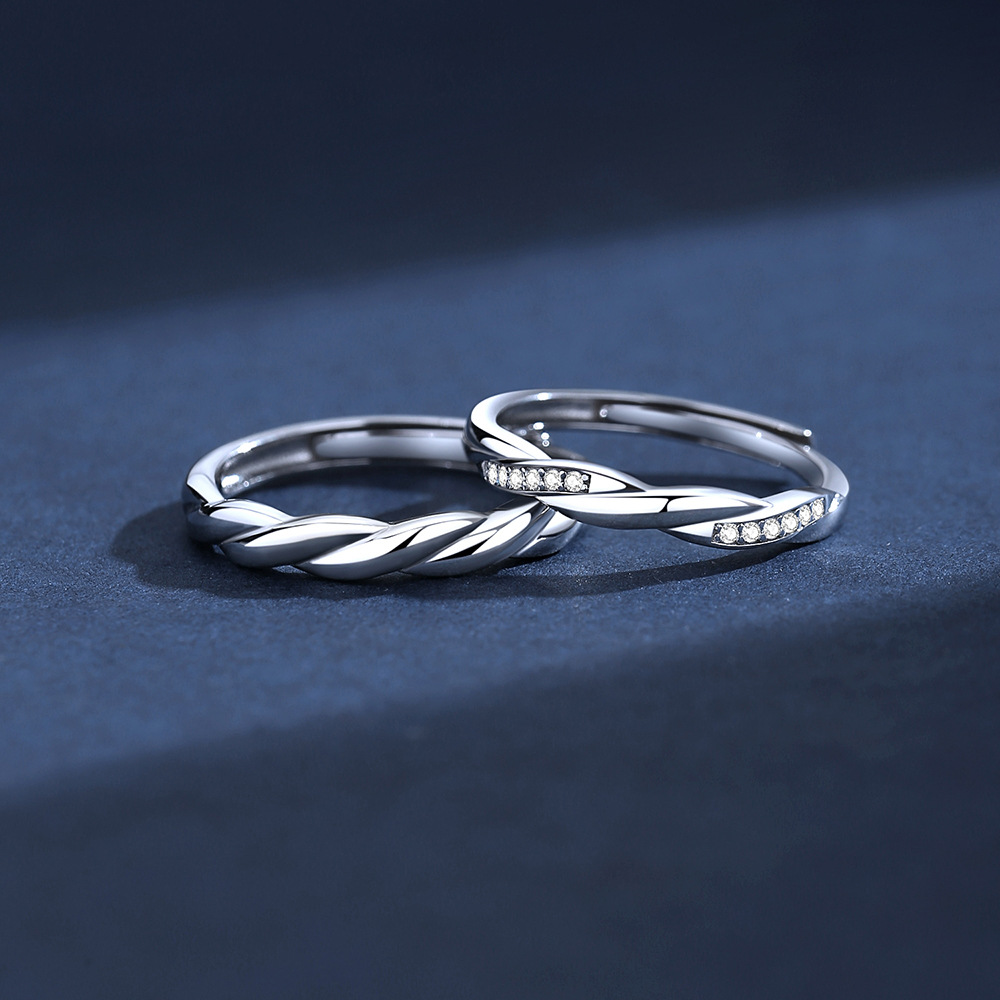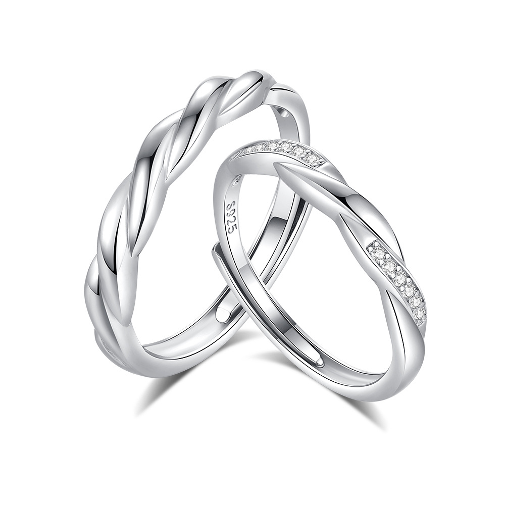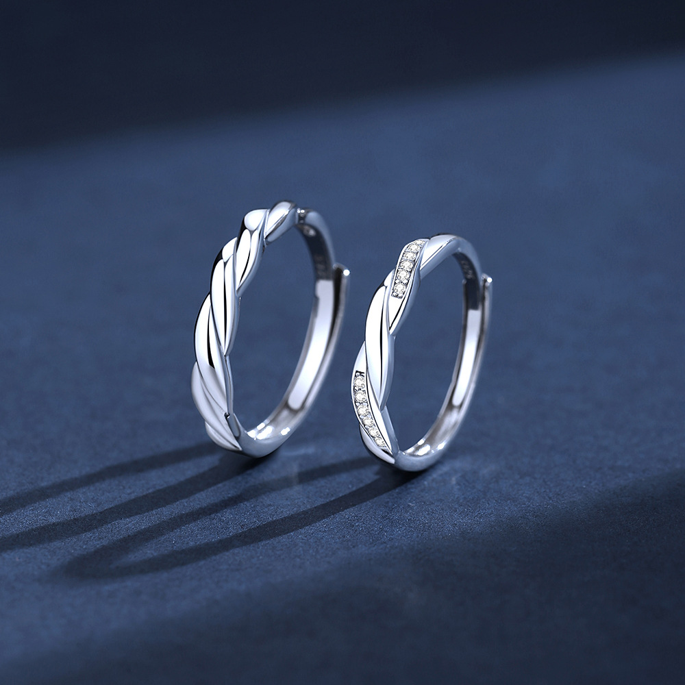 Fine Valentine’S Day Gift Couple Ring 925 Sterling Silver Metal Adjustable Simple Plain Rings Twisted Cubic Zirconia Ring Set