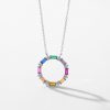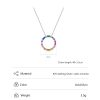 Fashionable Versatile Hollow Rainbow Colored Zircon CZ Clavicle Chain 925 Sterling Silver Round Circle Pendant Necklace