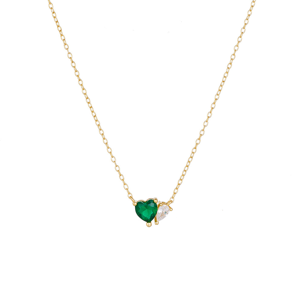 Hot Sale Romantic Fashion Love Clavicle Chain 925 Sterling Silver Gold Plated Simulated Emerald Heart-Shaped Pendant Necklace