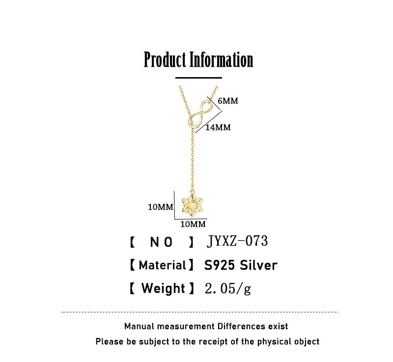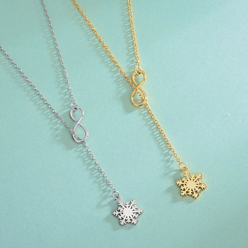Creative Lucky Number 8 Snowflake Necklace 925 Sterling Silver Gold-plated Snowflower Infinite Love Sweater Clavicle Chain