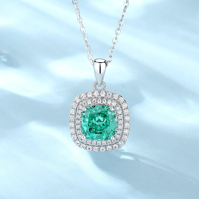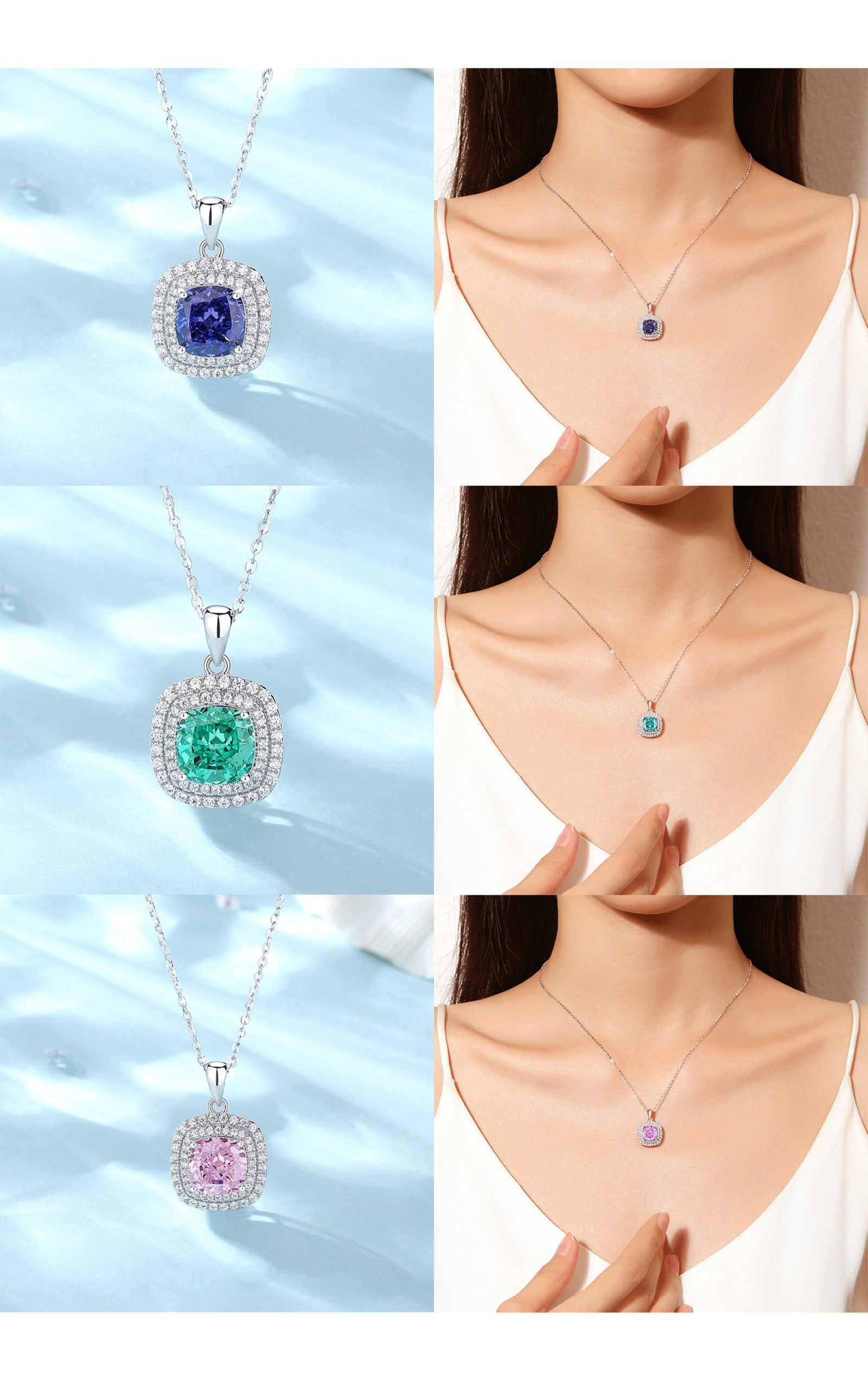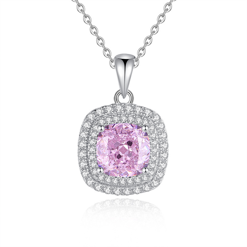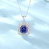 Wholesale Fine Jewelry Full Diamond Gemstone Clavicle Chain 925 Sterling Silver Cubic Zirconia square Pendant Necklace