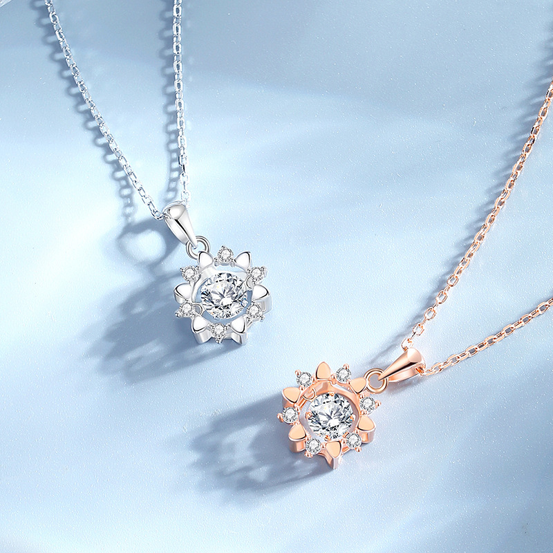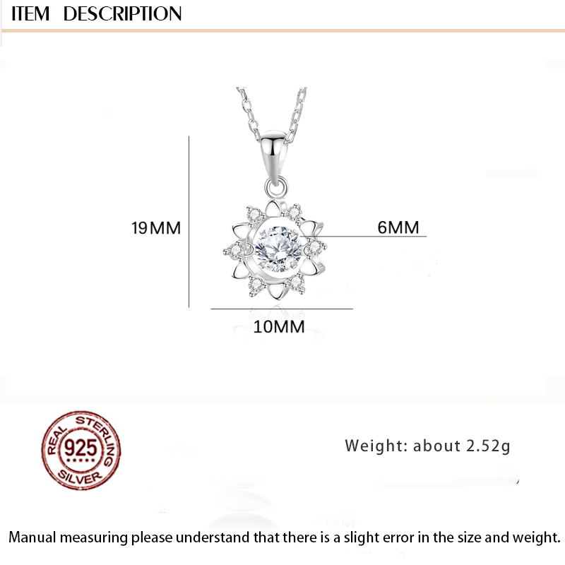 Light Luxury Fashion Jewelry Sunflower Necklace 925 Sterling Silver Beating Heart Moissanite Zircon Pendant Clavicle Chain