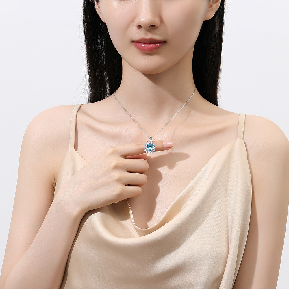 Luxury Banquet Fine Jewelry Big Stone Clavicle Chain 925 Sterling Silver Floral High Carbon Diamond Sunflower Pendant Necklace