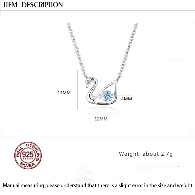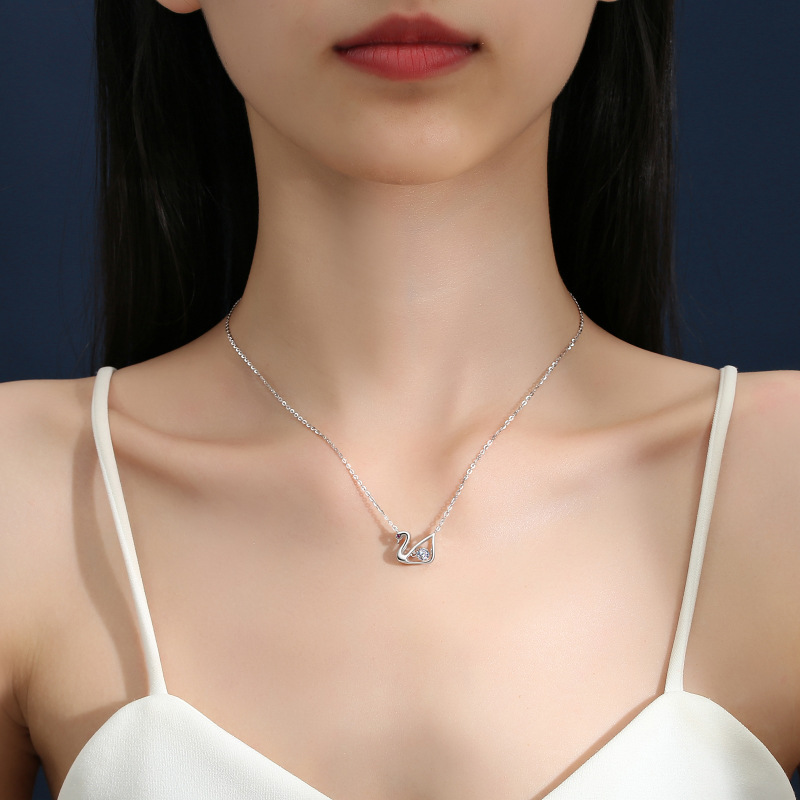 Light Luxury Fashion Ocean Heart Moving Moissanite Clavicle Necklace 925 Sterling Silver Animal Swan Beating Heart Necklace