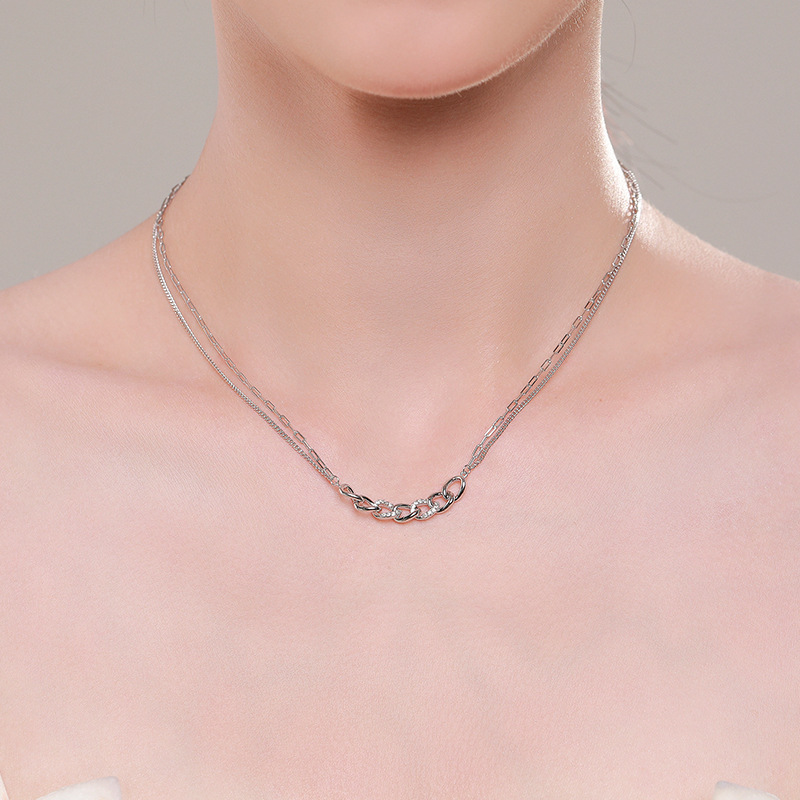 European American Hot Sale Double-layered Clavicle Chain 925 Sterling Silver Gold Plated Men Women Unisex Chain Necklace