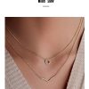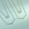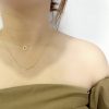 Genuine 925 Sterling Silver Simple V-shaped Crown Round Pendant Double Layer Stacking Necklace for Women