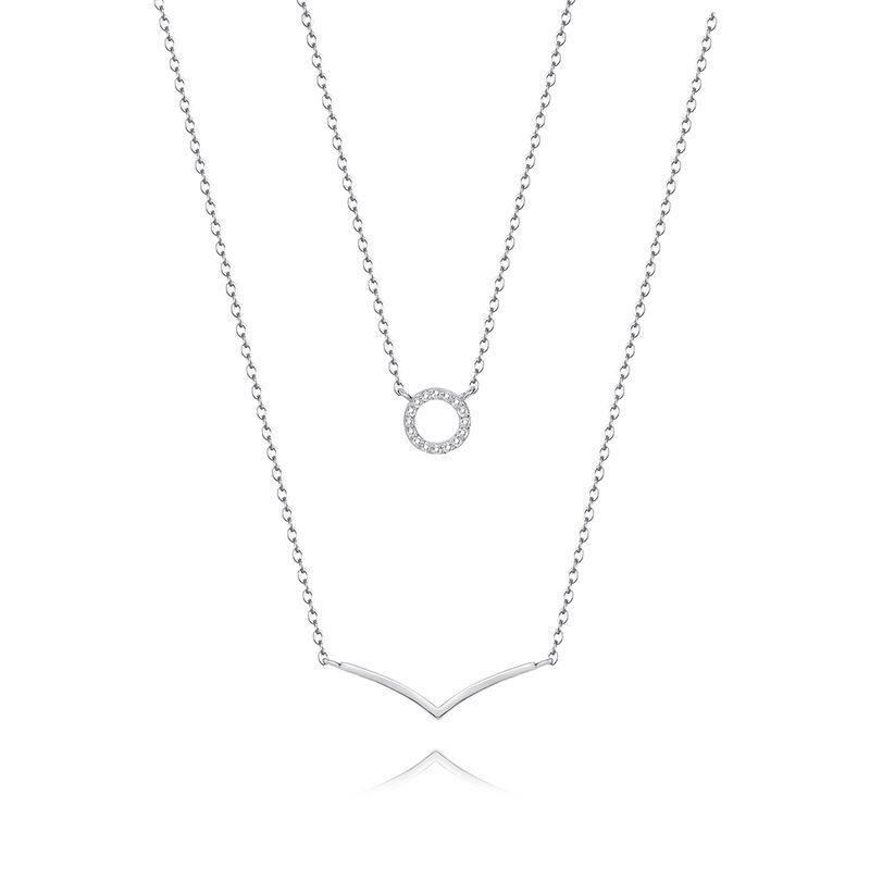 925 Sterling Silver V-shaped Crown Round Pendant Double Layer Necklace