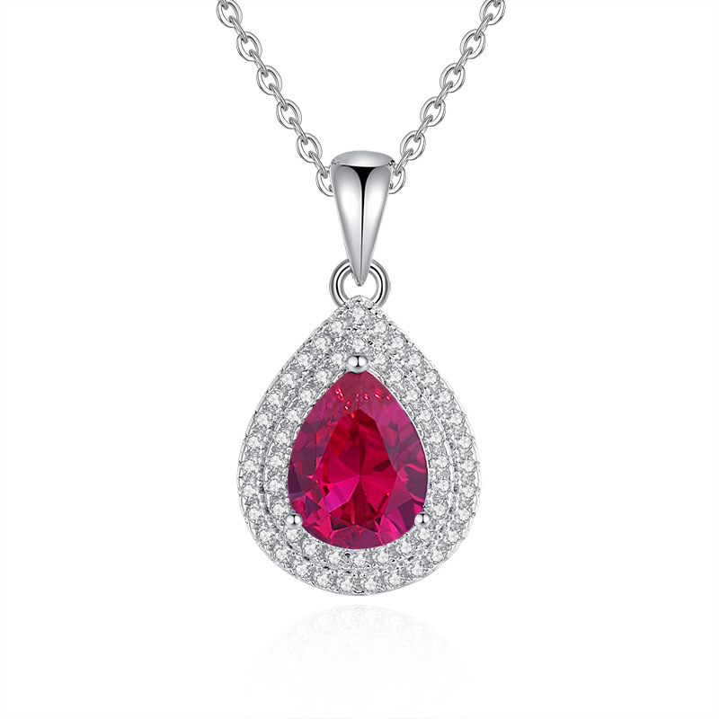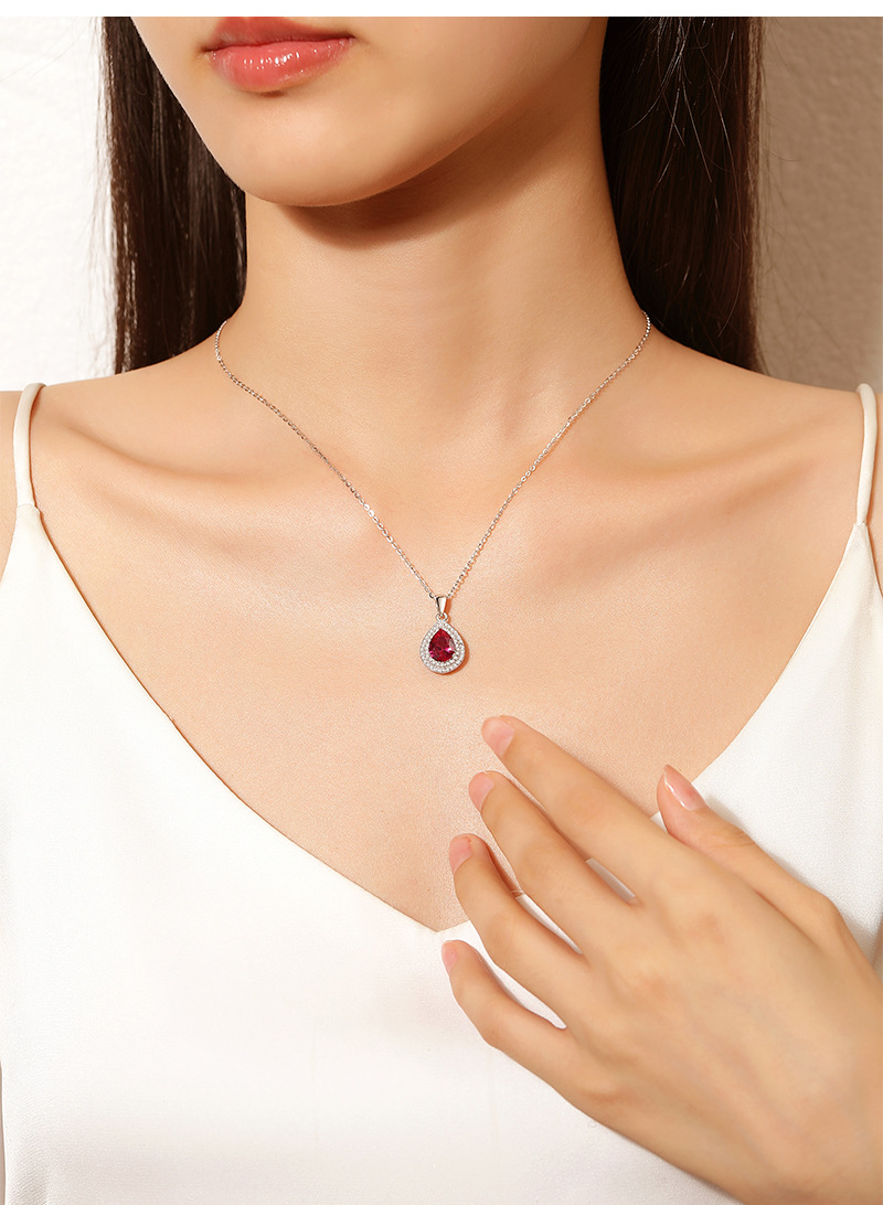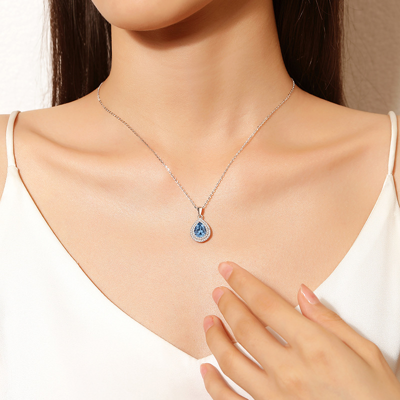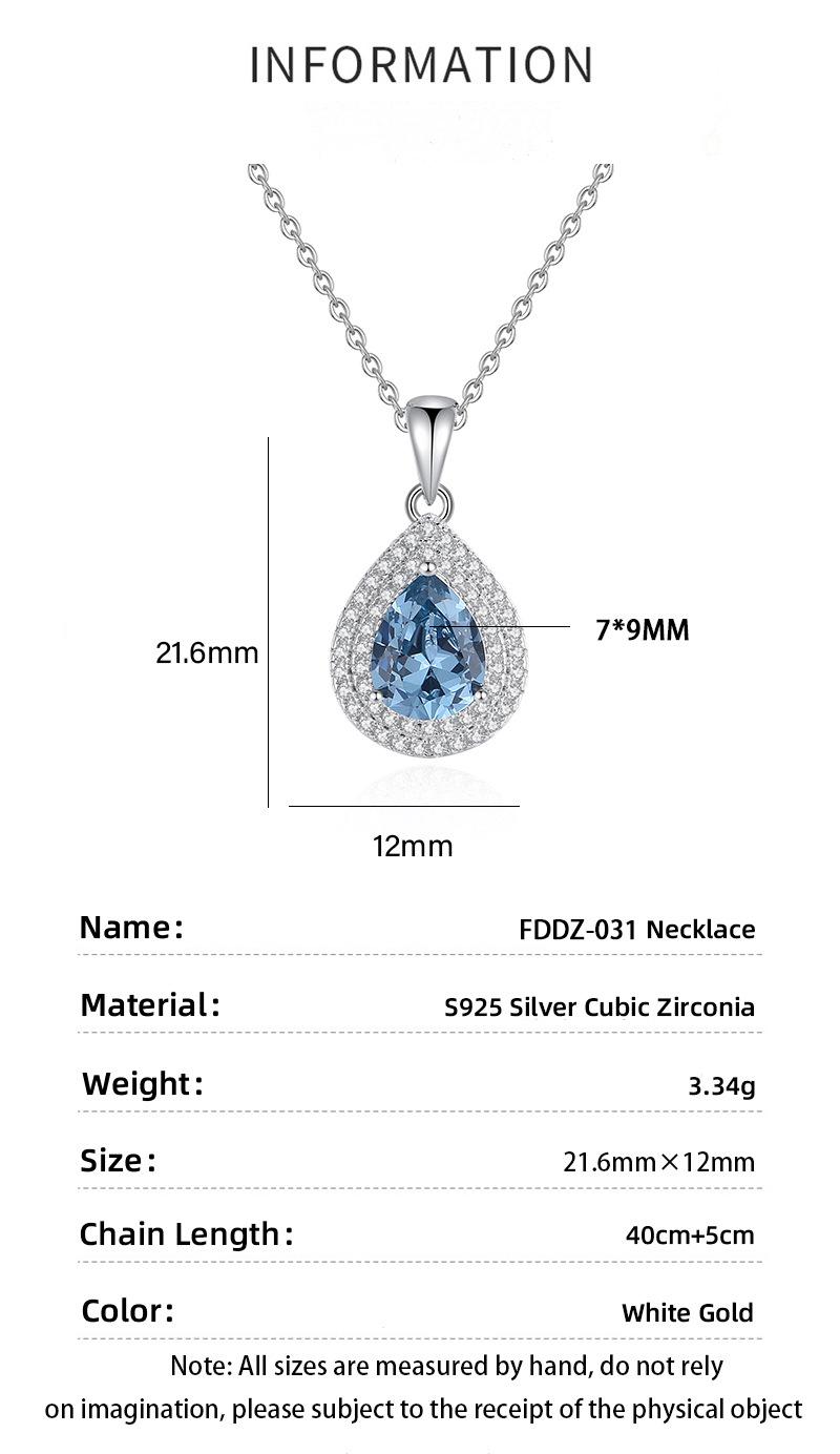 Fashion Classic Banquet Dress Accessories 925 Sterling Silver Full Diamond Waterdrop Pear Shaped Cubic Zirconia Pendant Necklace