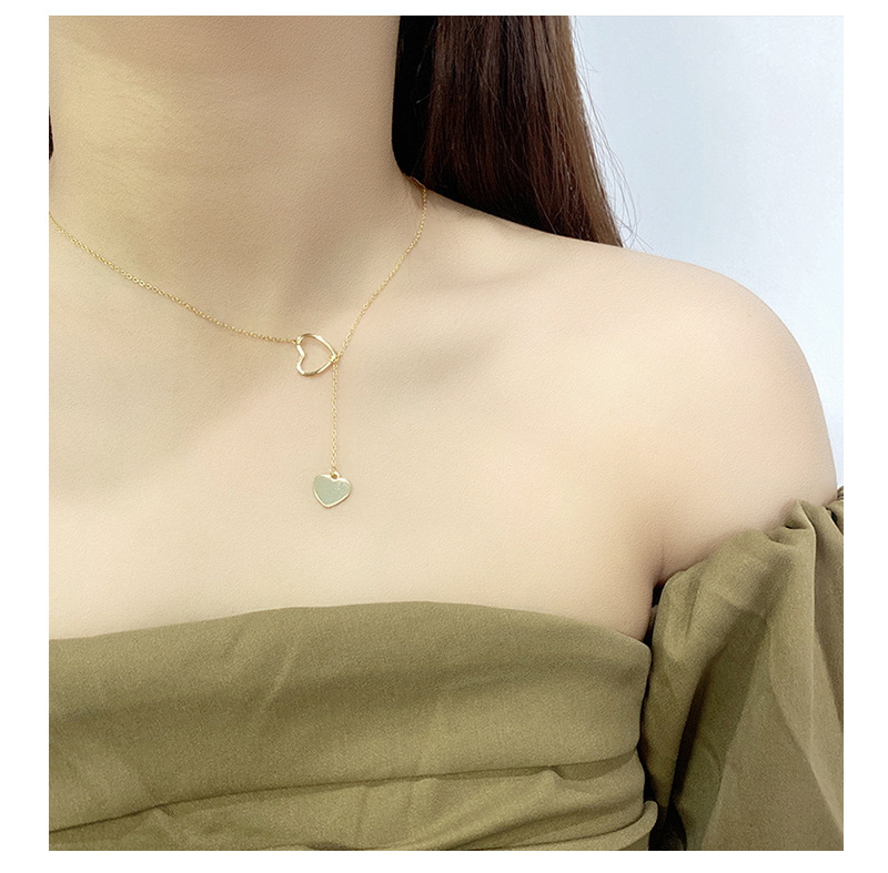 Creative and Simple Tassel Pendant Clavicle Chain 925 Sterling Silver Y-shaped Love Heart Pendant Necklace