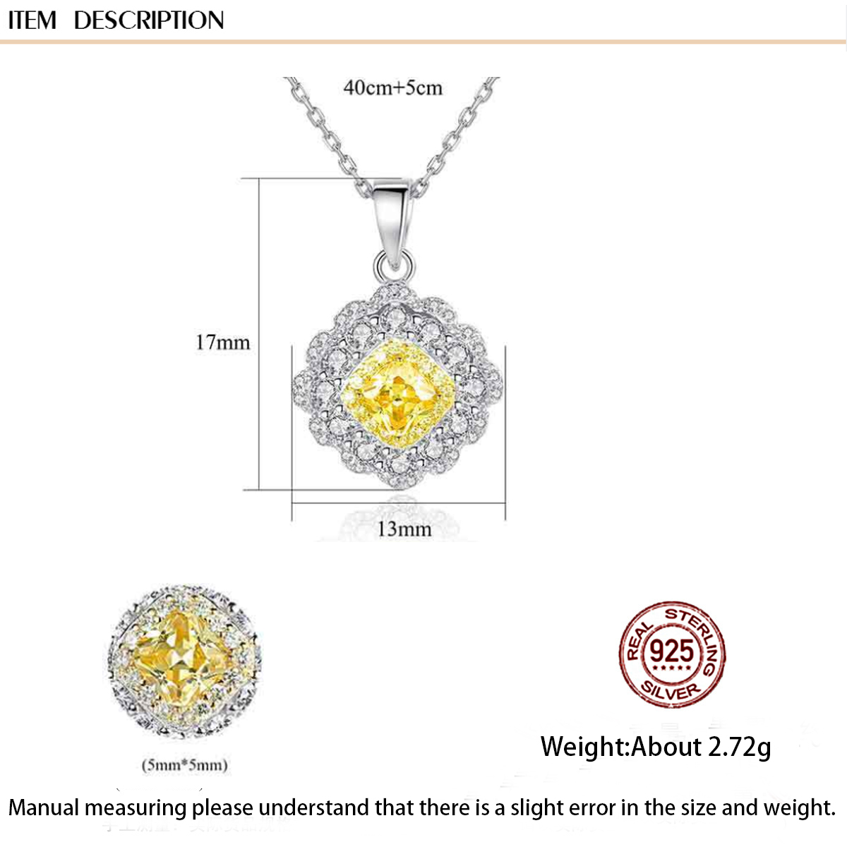Be the first to review “925 Sterling Silver Yellow Zirconia Square Pendant Necklace” 取消回复