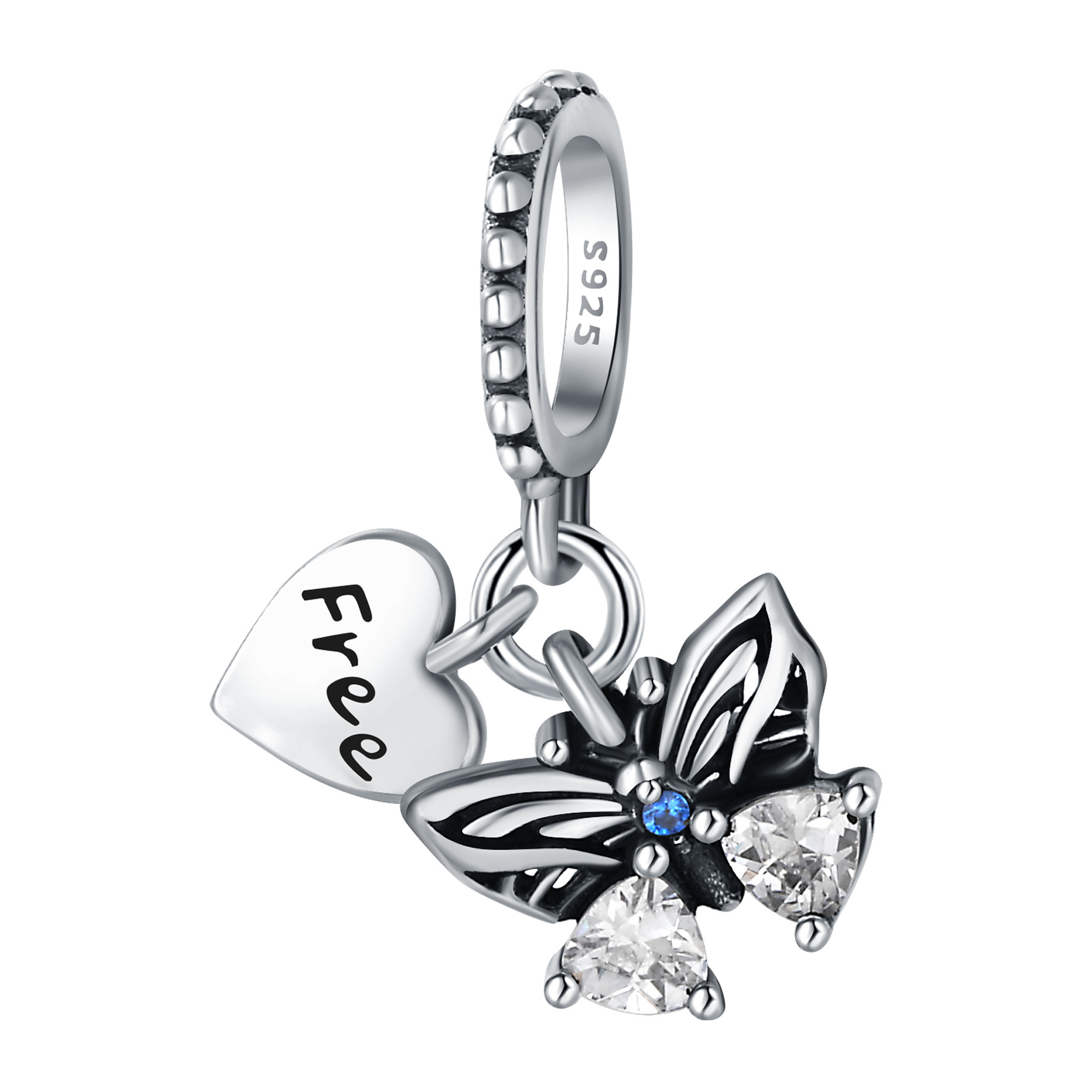 Vintage Classic Butterfly Charm Beaded 925 Sterling Silver Metal Zircon Free Love Heart Pendant DIY Bracelet Necklace Jewelry