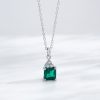 Elegant Exquisite 925 Sterling Silver Simulated Emerald Green Zirconia Pendant Necklace With Clavicle Chain Parties Engagements