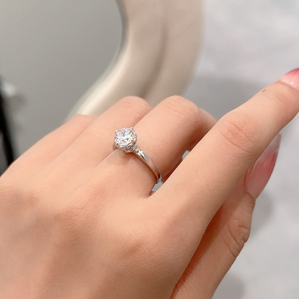 Classic Wedding Engagement Eternity Diamond Rings 925 Sterling Silver Adjustable Love Zirconia Moissanite Ring for Gifts