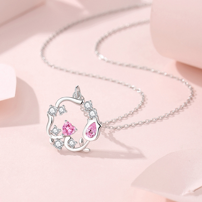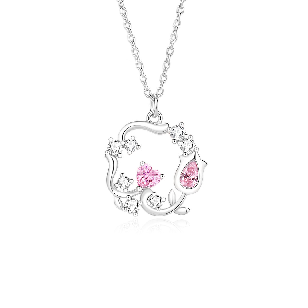 New Arrival 925 Silver Hypoallergenic Non Tarnish Lucky Wreath Sweater Clavicle Chain Women’s Fine Jewelry Rose Flower Necklace