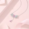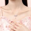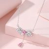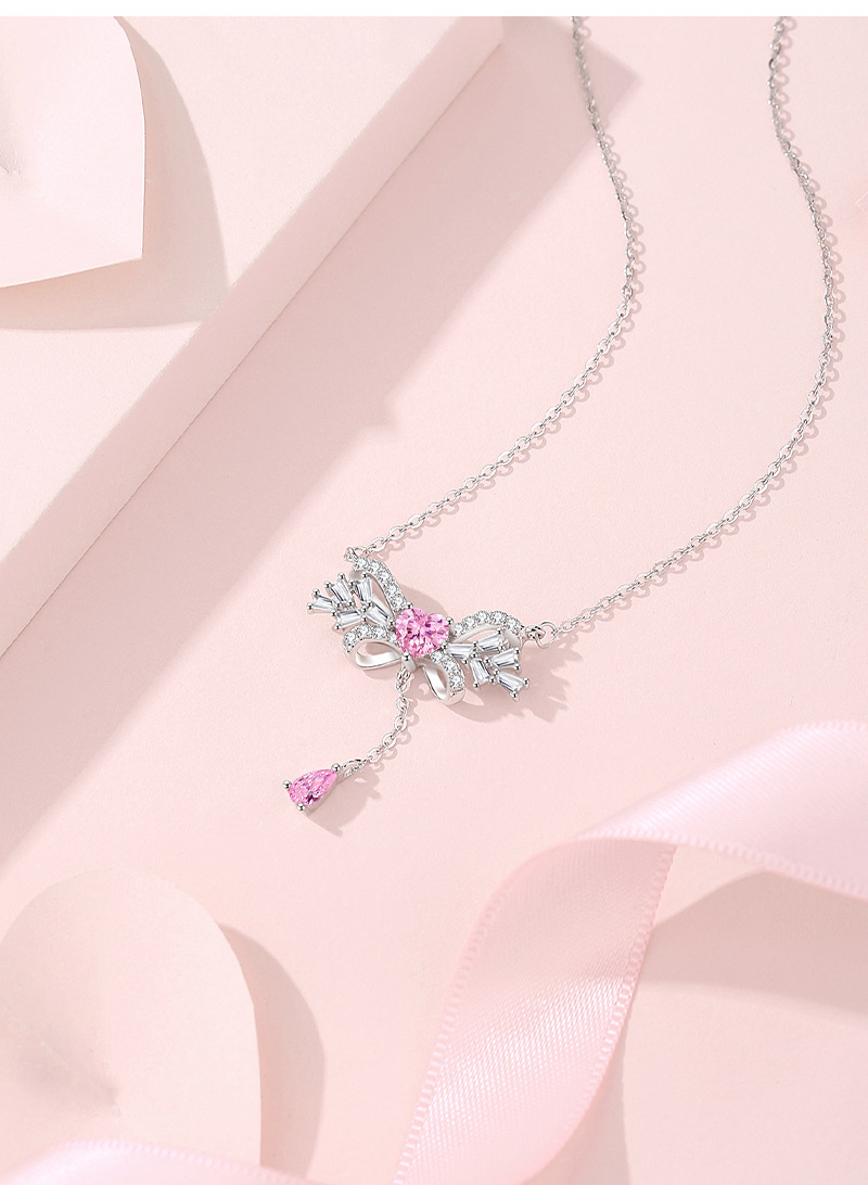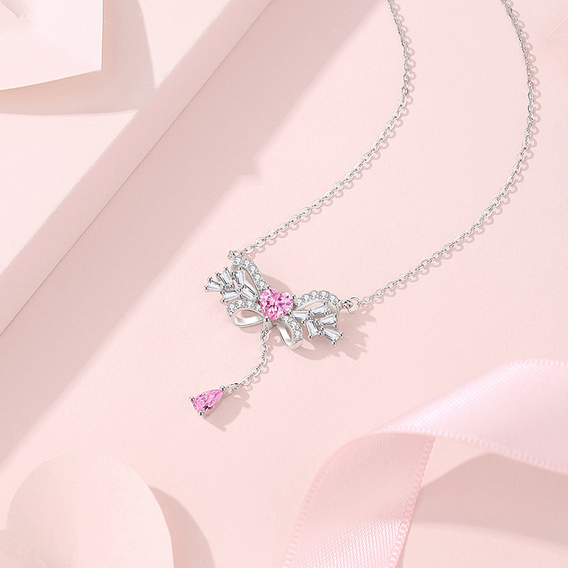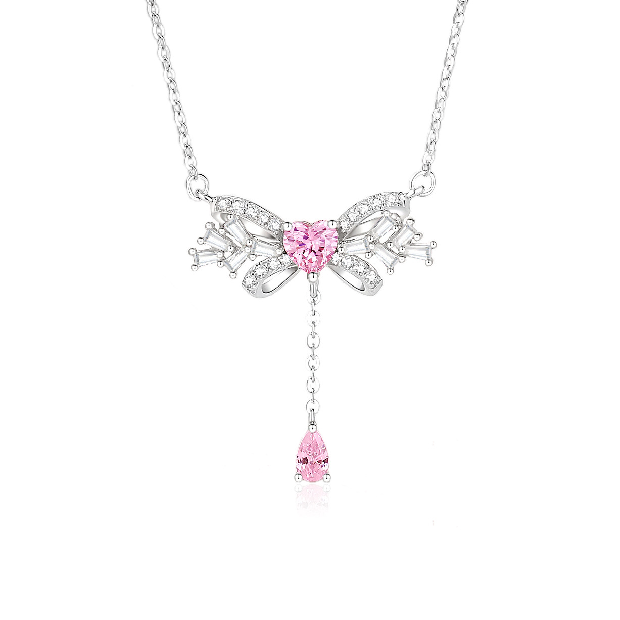 Exquisite Heart Pink Zircon Bow Necklace Valentines Day Gift for Girlfriend 925 Silver Jewelry Wholesale Bowknot Clavicle Chain