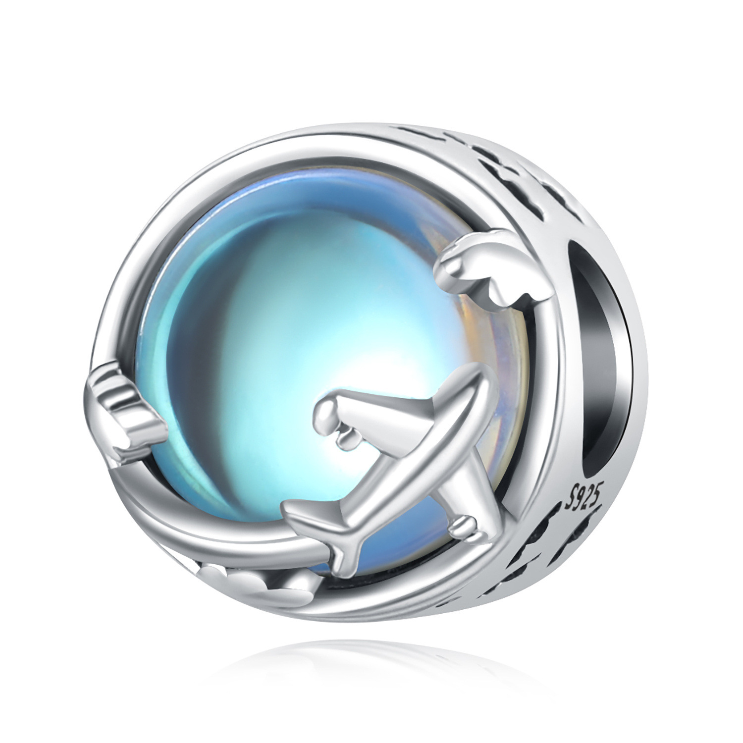 Fine Jewelry Holiday Travel Charm Sterling 925 Silver Airplane in the Clouds Bead for Bracelet Necklace DIY Jewelry Accessories