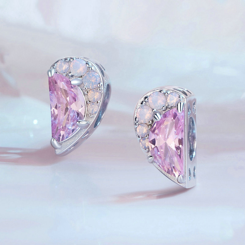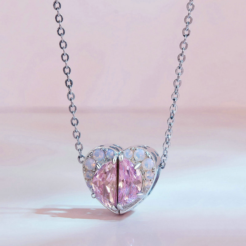Dreamy Pink Sisters Jewelry Beaded 925 Sterling Silver Detachable DIY Heart Shaped Charm Bracelet Necklace Making Accessories