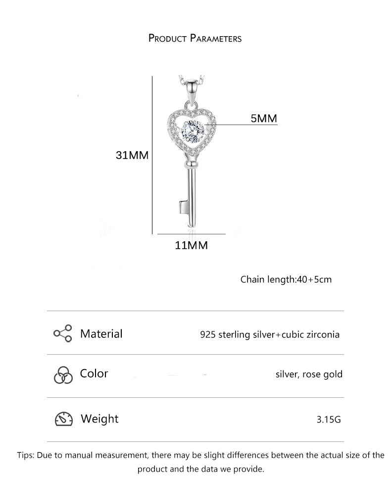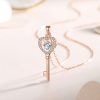 S925 Sterling Silver love Heart Zircon Hollow Key Pendant Necklace