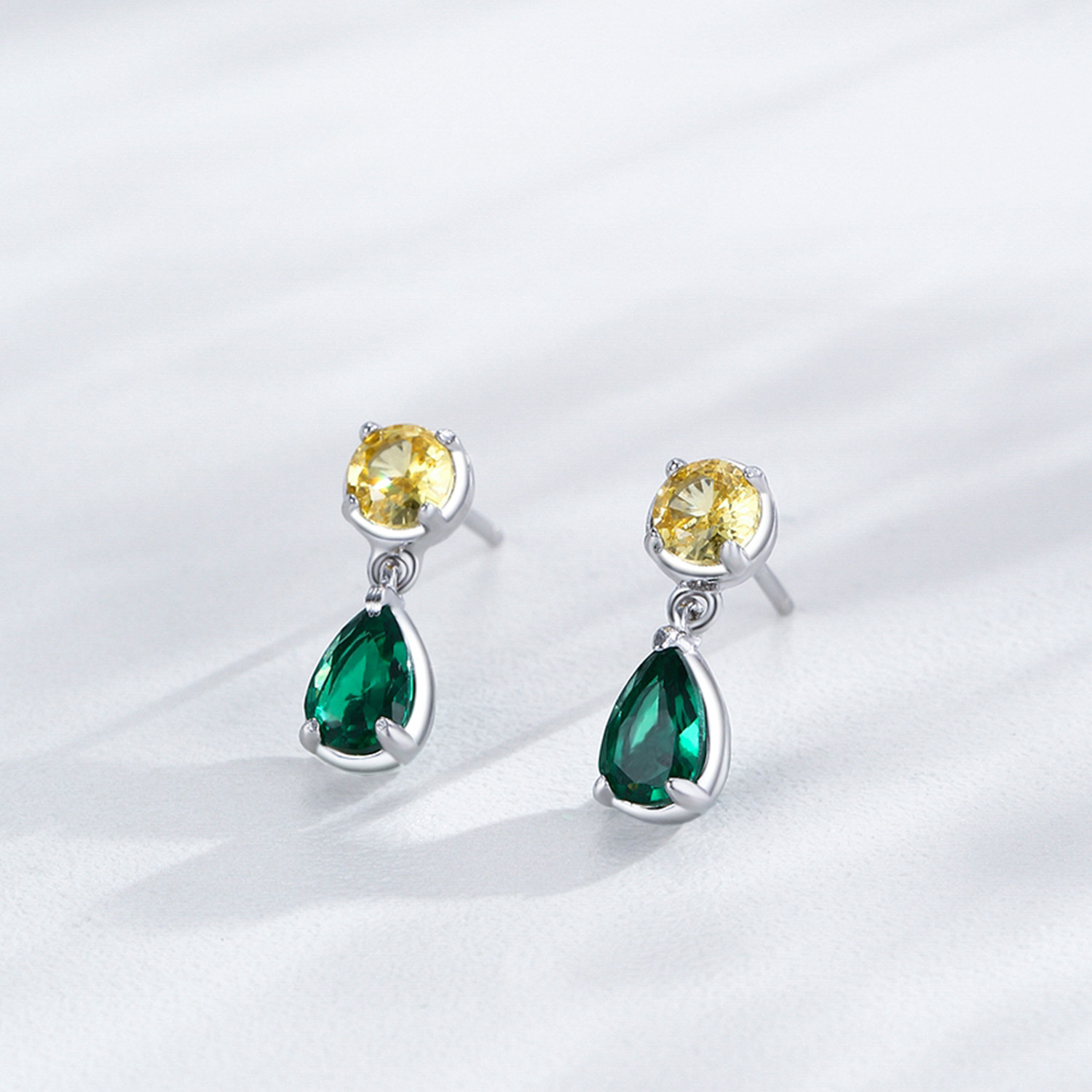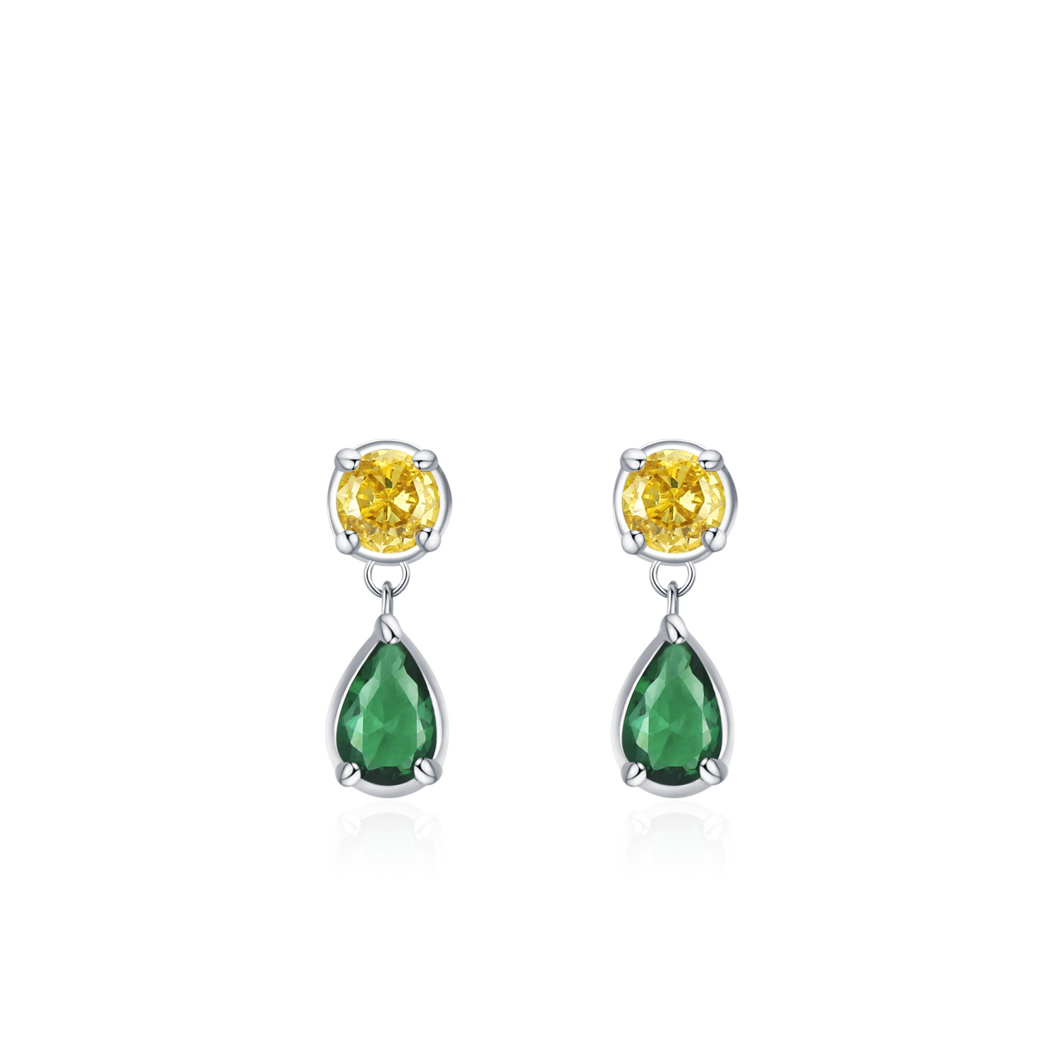 Cassic Geometric Round Drop Earrings 925 Sterling Silver Yellow Green Zircon Earrings for Women’S Fine Jewelry Accessories